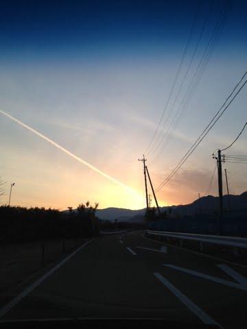 朝陽と飛行機雲のコラボレーションです♪