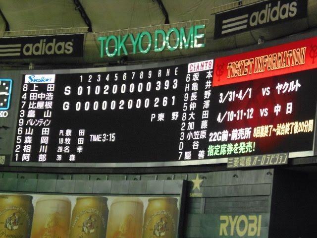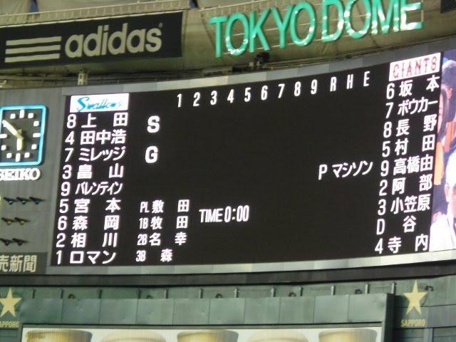 マシソンはバレンティンに2本のホームランを浴びるなどで3失点しました。高橋由選手の犠牲フライ、阿部選手のタイムリーヒットで2得点したのですが・・・。