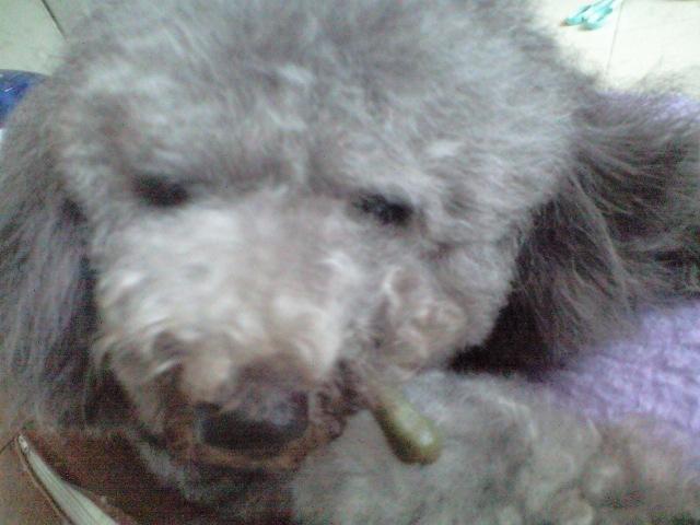 シャンプーしたのはいいけど 目がみえなくなったね[e454] カットしますね まずはご褒美にグーニーズの歯磨きガム