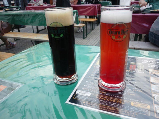 ただいま、このクソ寒い中、beerガーデン。小樽ビール旨すぎ。ヒルベアは右。木イチゴシロップが入ってとってもスイート。左はシュバルツ。旧東ドイツの伝統的なビール。