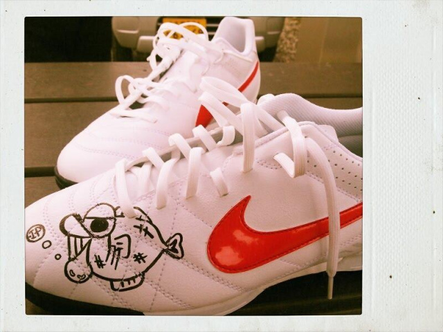 外用のトレーニングシューズ新しくしたよぉちょっとデコってまだ完成じゃないなもう少しデコろ〜♪