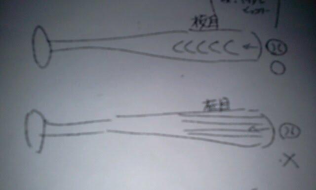 今までなら、メーカロゴが入ってる板目でボールを打つと、ボールは飛ばず、バットが折れやすいので、その面を避けて柾目で打つことが常識でしたが、