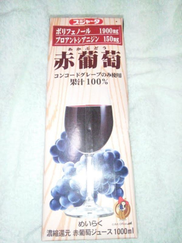 スジャータの赤葡萄ジュース、1Lで280円くらい。