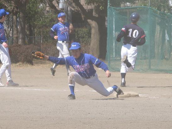 40歳を超えているメンバーのチームが盗塁をみんなする。