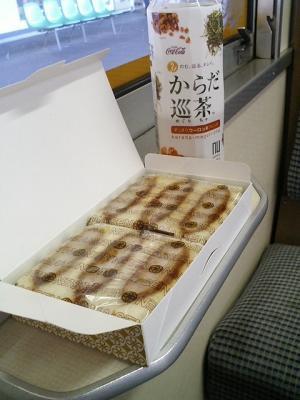 伊豆急線車内で東京駅で買った「まい泉」のカツサンド(写真)