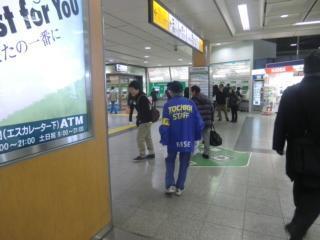 宇都宮駅の改札口辺りに、サポーターを誘導する案内係さんがいました。