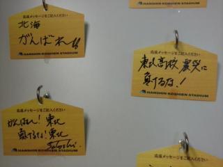 試合が6回に入る前に、バックネット裏上方のスタジアムの文字スクリーンには各校のメッセージが流れてきて