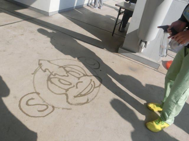 スタッフのお兄さんが霧吹きでいきなり何かを書きはじめました!!