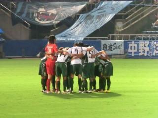 キックオフして5分に難波選手に決められて失点。