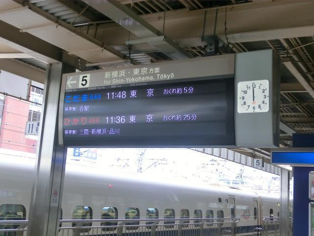 11時36分静岡発の新幹線が約30分遅れで東京駅に向かって出発しました。