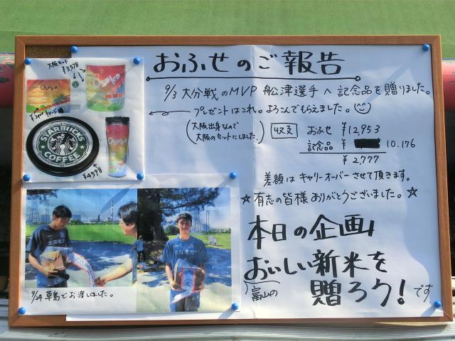 9月11日、湘南戦の後に、サポーター有志がスタジアムで出待ちをしてそのプレゼントを黒部選手に。