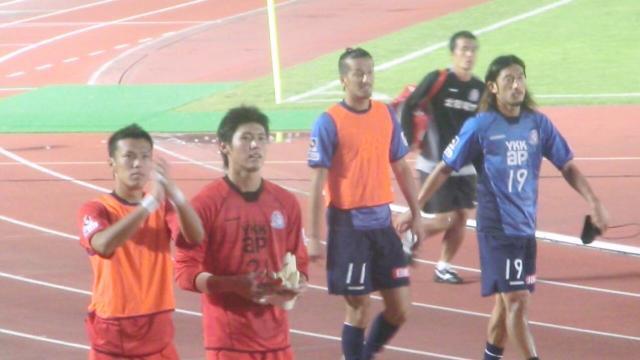 大木監督の名前のときはカタ-レ富山ゴ-ル裏側からも拍手が起きていた☆
