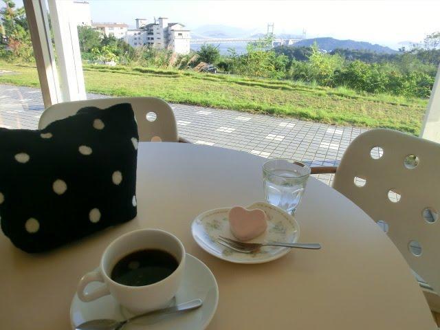園内のカフェからまたまた瀬戸大橋と瀬戸内海を眺めながらおやつタイム。