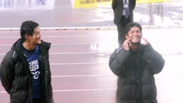 試合中も勝利のダンスのときも雨だったのに