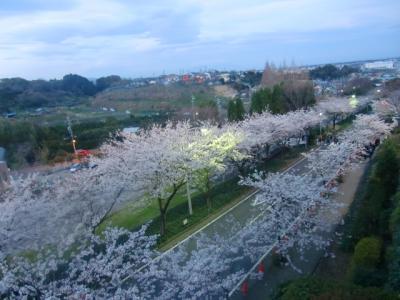 夕方到着だったので、あまり綺麗に撮れなかったけど、スタジアムの上から撮ってみた桜トンネルの写真をどうぞ☆