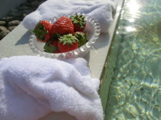 のぼせないよーにお風呂に浸かりながらイチゴ♪