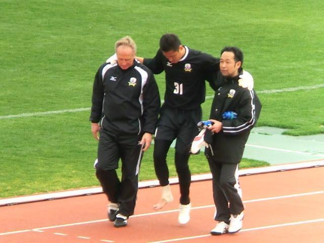 岐阜は26分に阪本くんがちょっと接触プレーから足を痛めてしまって