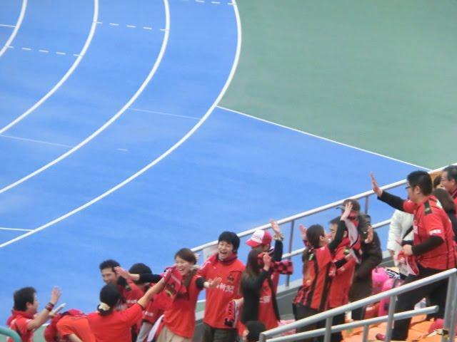 試合後は金沢の選手とサポーターがいっしょに勝利のダンス