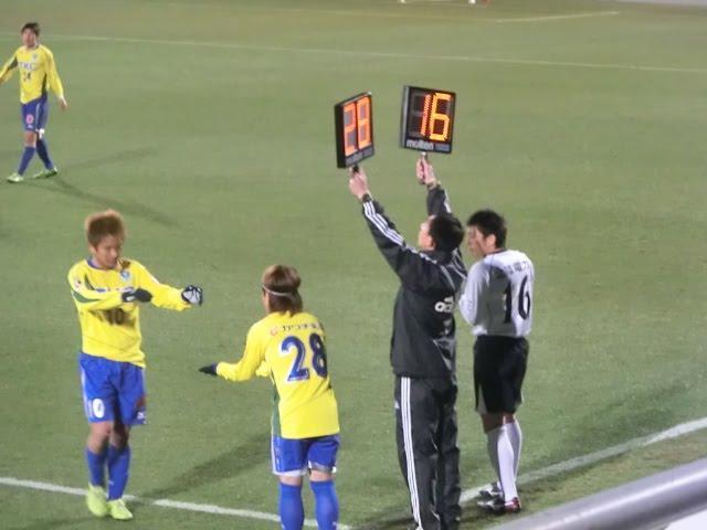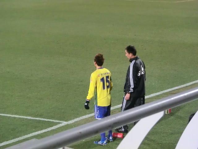 菊岡くんがピッチに入ると富山のキャプテン足助くんが握手に来た!