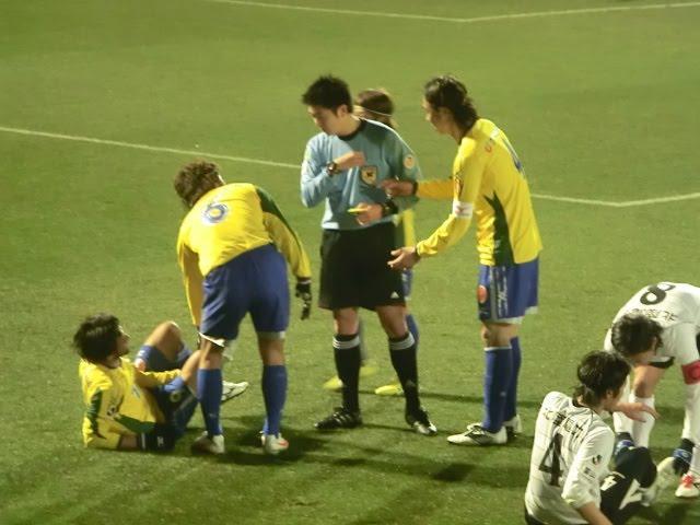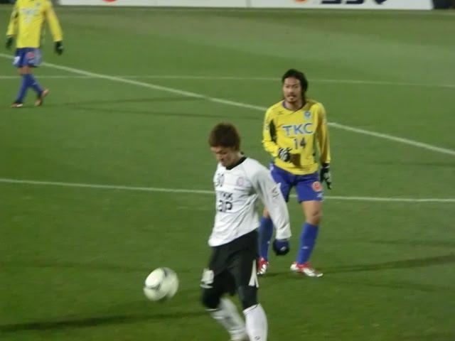 サビアをブロックに行った富山のボランチ・ヨシタクくんも疲労から脚をつっていました。