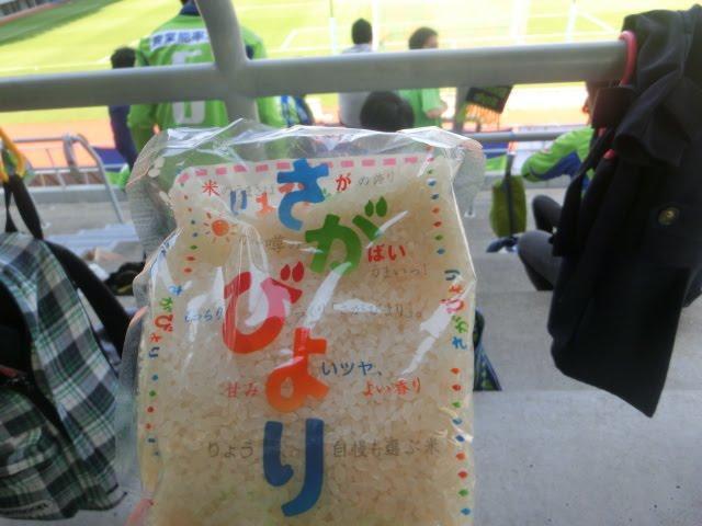 15時00開門と同時に、階段を登りきった入り口で、サガンティーナの可愛い女のコたちから、湘南ベルマーレサポーターの私たちがプレゼントでいただいたのは、お米。