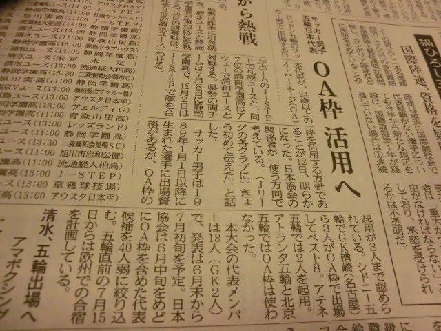 五輪日本代表のオーバーエイジ枠活用の記事も載っていました。