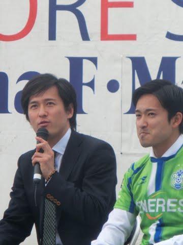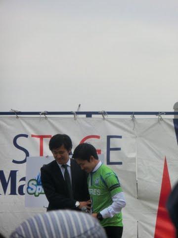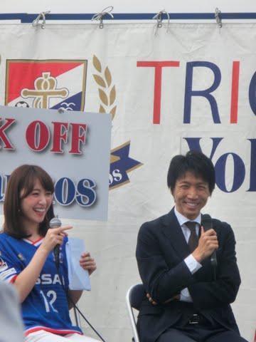 (隣の可愛い女性は、マリノスの応援番組を担当されている方だそうです。このとき波戸さんからこの女性のお父さんがこのステージを見に来ていることを暴露されてお二人で笑っていた場面)