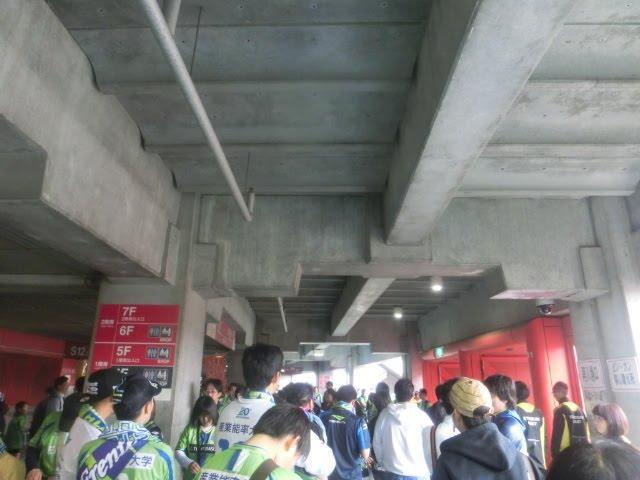 外に出るに出られず通路に溢れ始めた湘南サポーター