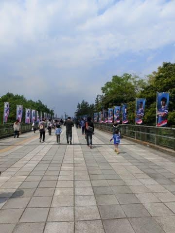 スタジアムに到着すると、左右に別れた待機列に、ものすごい数の湘南ベルマーレサポーター!