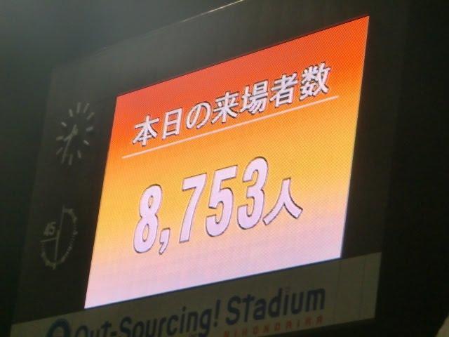 平日のナイトゲームにも関わらず8753人もの観客が入り