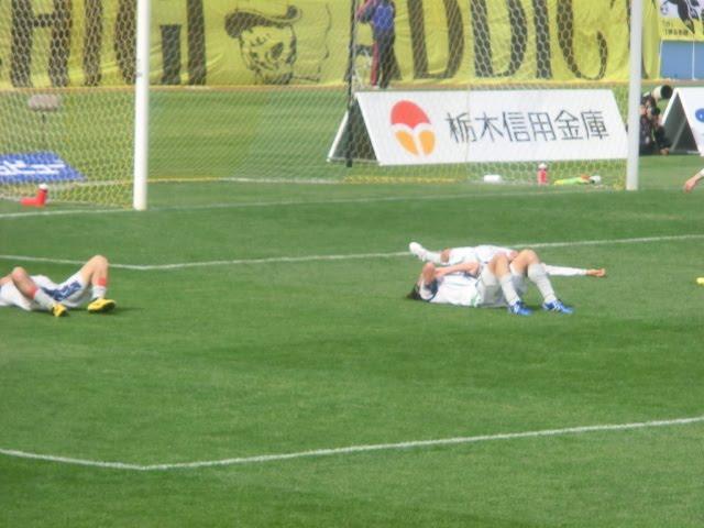 試合後栃木SCの選手は倒れ込みこそしなかったけど