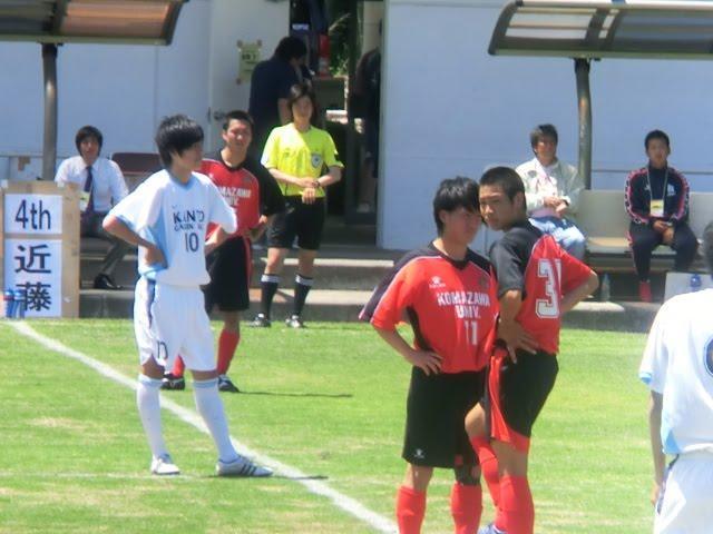 前半13分に背番号8・トップ下の碓井鉄平くん(山梨学院大附属高出身・3年)の右クロスから湯澤洋介くんが決めて駒澤大学が先制