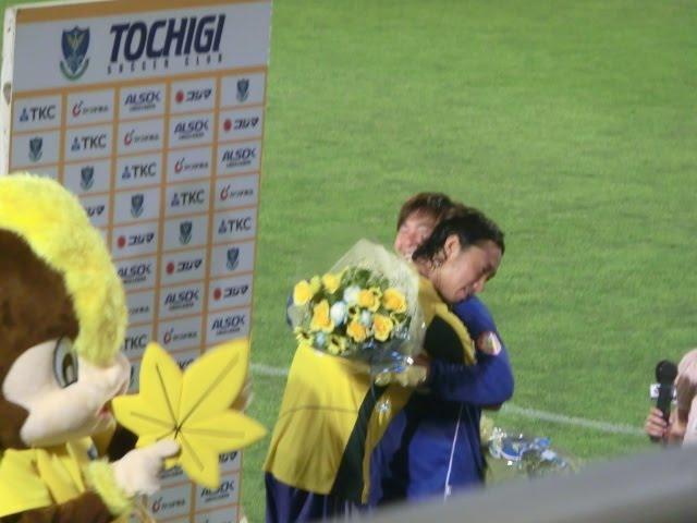 栃木の選手とサポーターのみんなで肩組んで県民のうた合唱