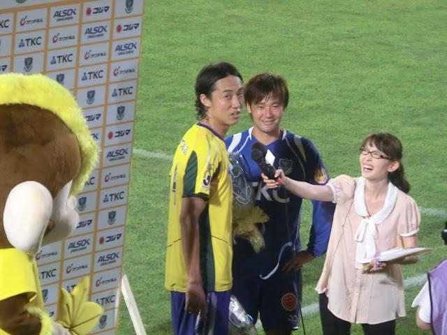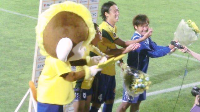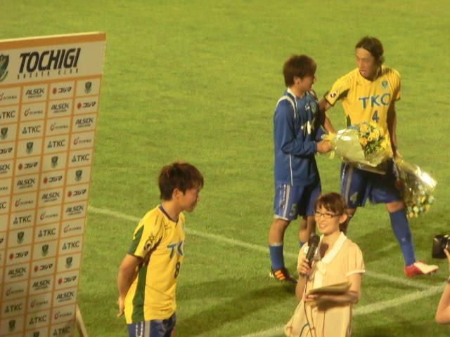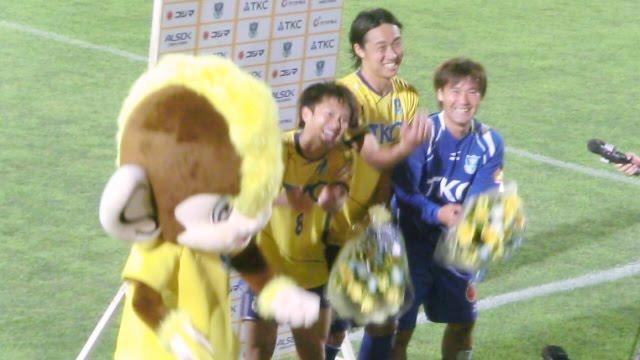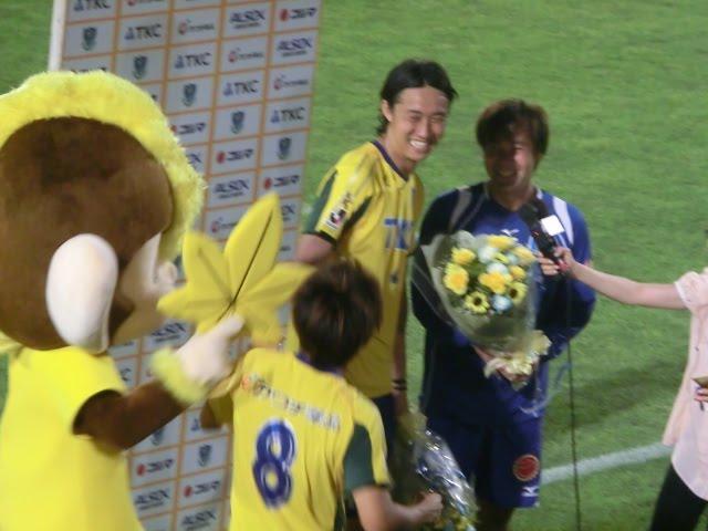 そんな廣瀬の向こう側でゴール裏サポーターから貰った花束を持っている二人組は