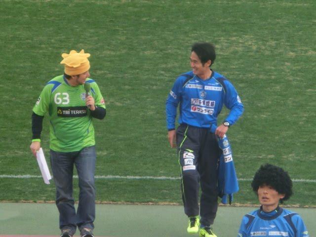 ピッチサイドで実況していた福島ユナイテッドのDJさんとロンドさんでしたが