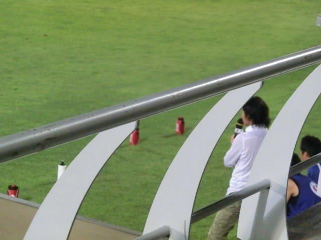 メインスタンドサポーターの元に応援練習に来てくれていた茂さんと野崎くんを通路でつかまえてパチリ