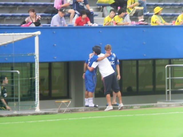 廣瀬は横浜さん側のベンチにお邪魔してGKのシュナ潤選手と☆