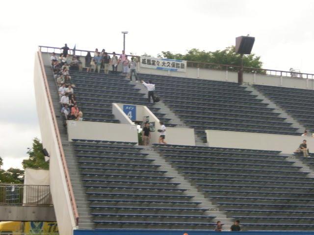 ガラガラなメインスタンドなのに不自然に隅っこに座るお方たち