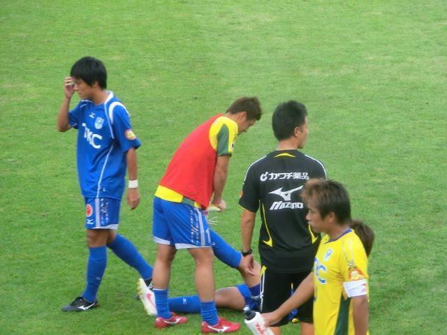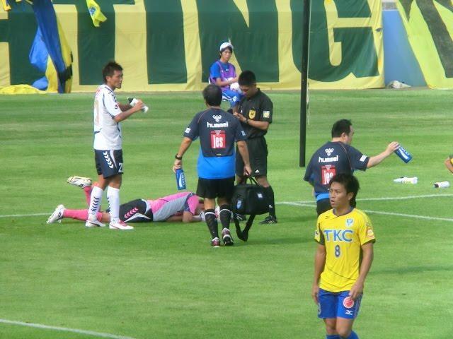 ベンチに置いてあったパイプイスがピッチ内に!!(笑)