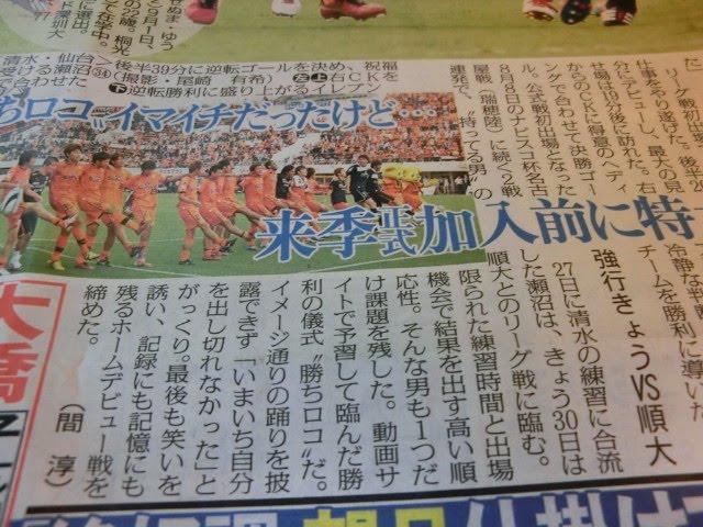 スポニチ静岡版を飾るセヌー