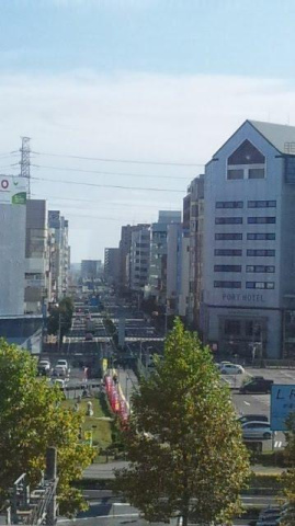 新幹線ホームから見た駅前・グリスタ方面の道路