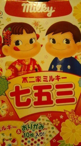(千歳飴パッケージの普通のミルキィ・折り紙付)