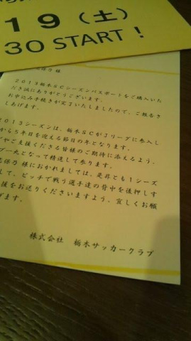 「是非とも1シーズンを通して、ピッチで戦う選手達の背中を後押しする熱き声援をお送りくださいますよう、宜しくお願い申し上げます」とあったので