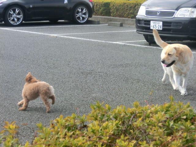 土手に遊びにきていたワンちゃんと遊ばしてもらいつつ