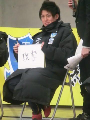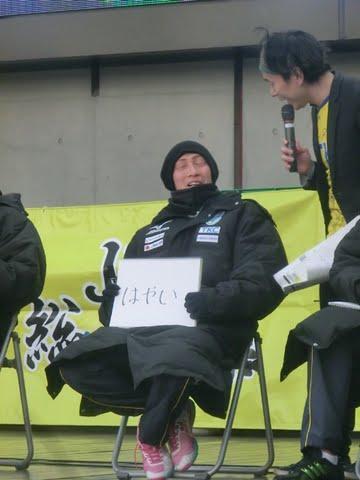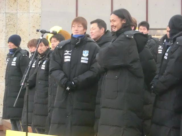「みなさんほんとにきてくださってありがとうございます。ほんとにいいエネルギーをもらいました。今日ここからシーズンは始まります。今年最初の県民のうたをみんなで歌いたいと思います。」