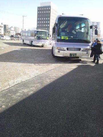 いつもは一台しか停まっていないシャトルバスが今日は次々に待機
