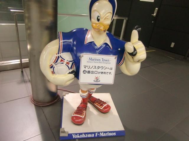写真は帰りに「新高島町駅」で撮ったマリノスくん。