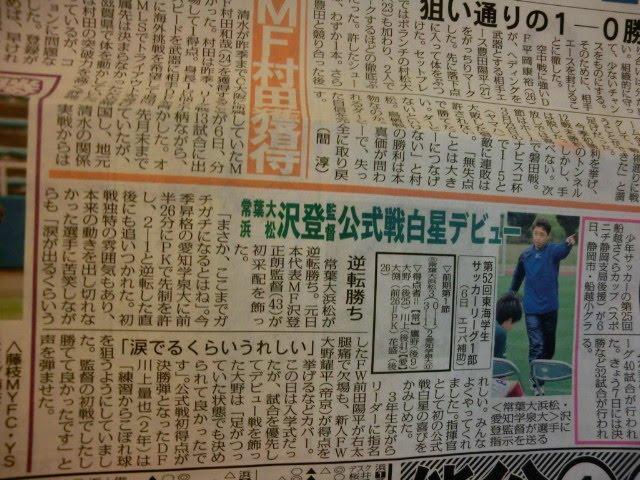 澤登さんが監督に就任した浜松大(常葉大浜松)サッカー部初戦勝利の記事も載っていたのでどうぞ☆