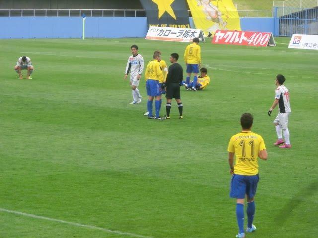 ファウルをもらった岐阜の森安選手を栃木のポニョが頭をポンポン叩いてなだめてくれていたり