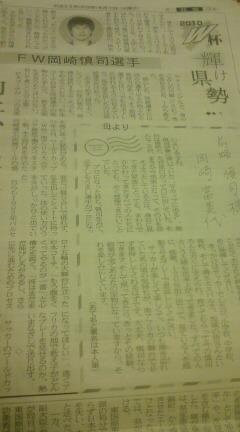 今日の静岡新聞朝刊に、岡崎慎司選手のお母さんの手紙が掲載されていました。